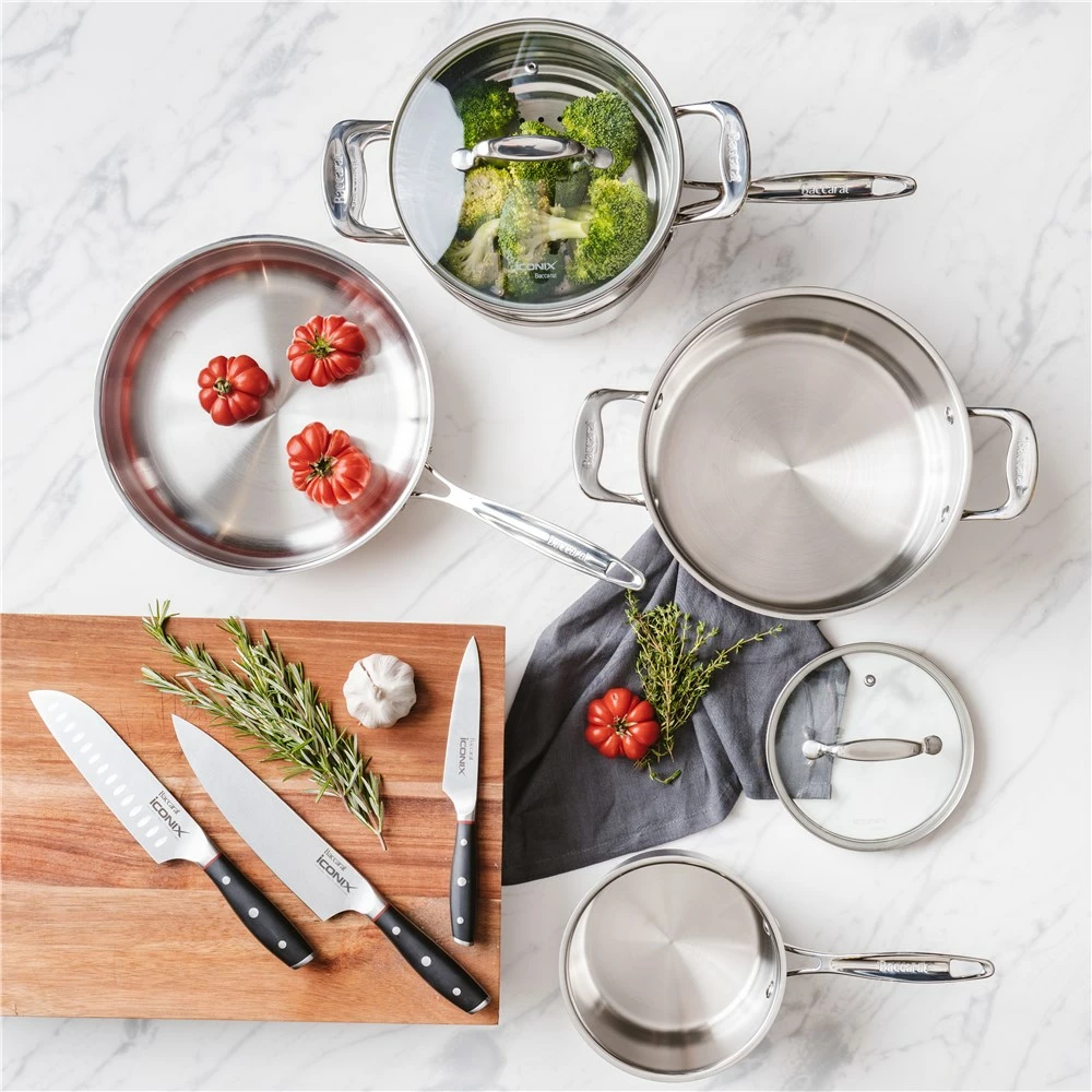 Get creative in the kitchen and achieve restaurant quality results using the Baccarat iconiX 9 Piece Stainless Steel Cookware Set!