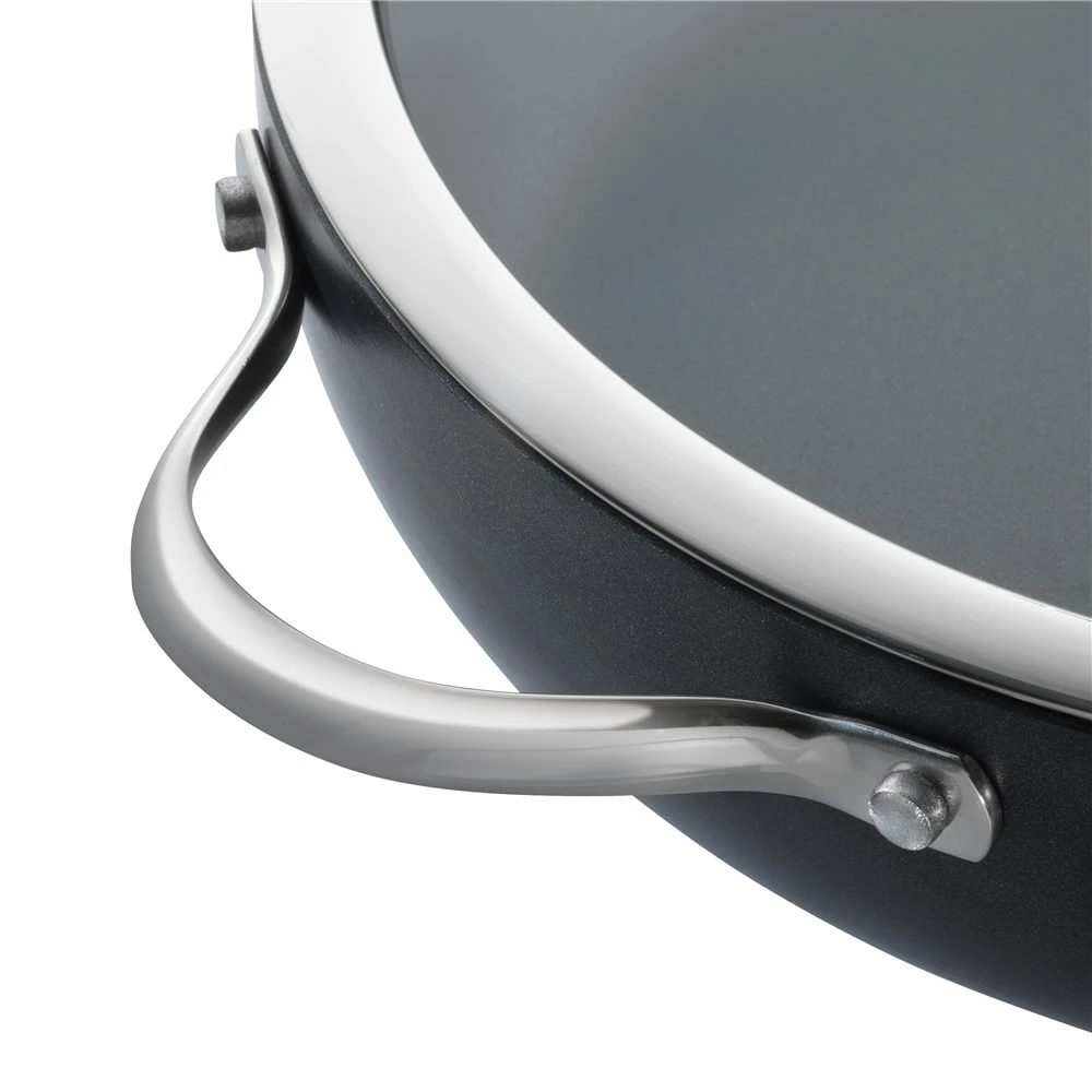 - Body is hard anoidsed, making it twice as hard as stainless steel