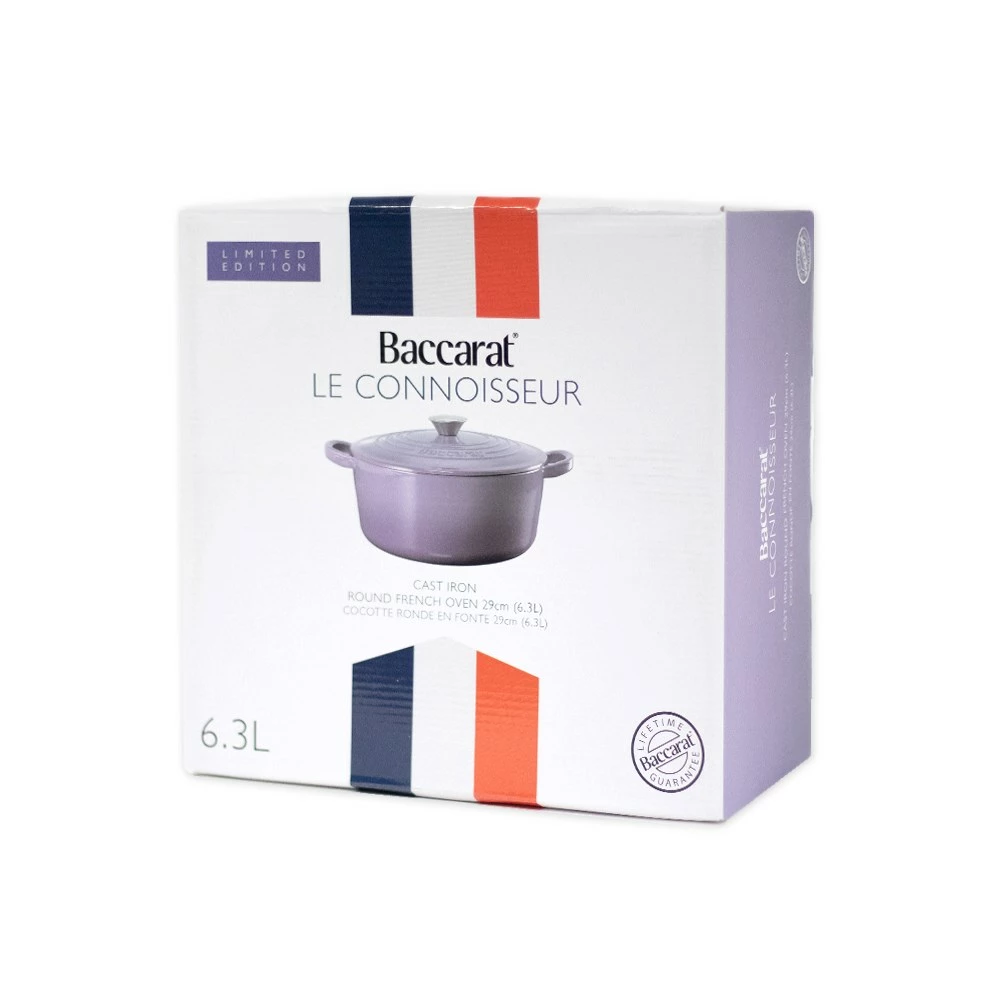 Explore your passion for cooking and create anything from casseroles to home baked bread with the Baccarat Le Connoisseur Cast Iron Round French Oven 29cm 6.3L in Purple.