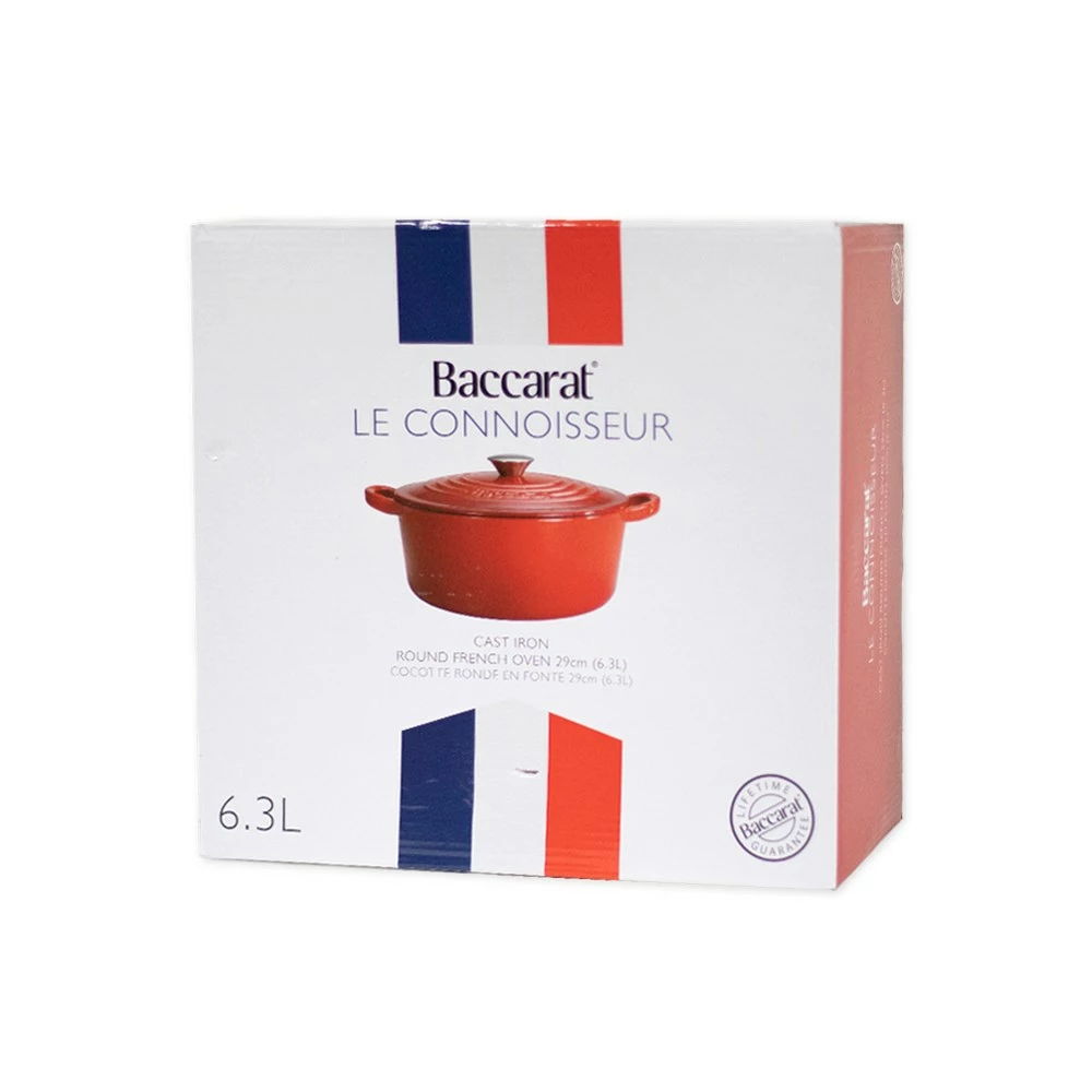 Explore the richness of European cuisines and create delicious stews, casseroles, and other divine dishes with the Baccarat Le Connoisseur Round Cast Iron French Oven! With a generous 6.3L capacity, this essential winter cookware item is perfect for preparing hearty and healthy dishes to warm the hearts and bellies of your friends and loved ones. Crafted from premium grade cast iron, the Baccarat Le Connoisseur French Oven is designed to be incredibly tough to withstand many autumns and winters worth of use, and remains resistant to chipping and breaking. Moulded with easy-grip handles for safe handling, the Le Connoisseur French Oven also includes a lid with unique spikes on the underside that actively collect and channel moisture back into the food, whether you?re cooking on the stove or in the oven the Le Connoisseur French Oven ensures perfect results every time.