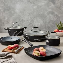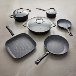 | Dimensions | Saucepan with Lid: 16cm, Frypan: 20cm, Frypan: 26cm, Casserole with Lid: 24cm, Grill Pan: 28cm, Saute Pan with Lid: 32cm |