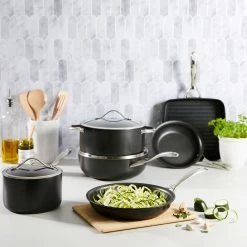 Bring a pop of colour to your kitchen and create all kinds of delicious meals with the Baccarat STONE Cast Aluminium 10-Piece Cookware Set!