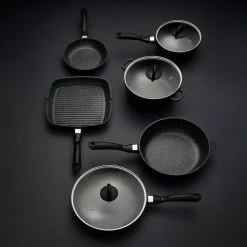 - Comprehensive set comes equipped with 1 x 16cm Milkpan, 1 x 20cm Saucepan with lid, 1 x 24cm Casserole with Lid, 1 x 28cm Grill Pan, 1 x 20cm Frypan, 1 x 28cm Frypan, 1 x 32cm Saute Pan with Lid, 1 x 28cm Wok, 1 x 32cm Roaster with Grill Lid