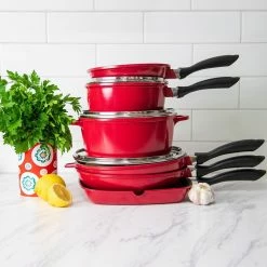 Cook up a storm with the stylish red Baccarat STONE Cast Aluminium 6-Piece Cookware Set!