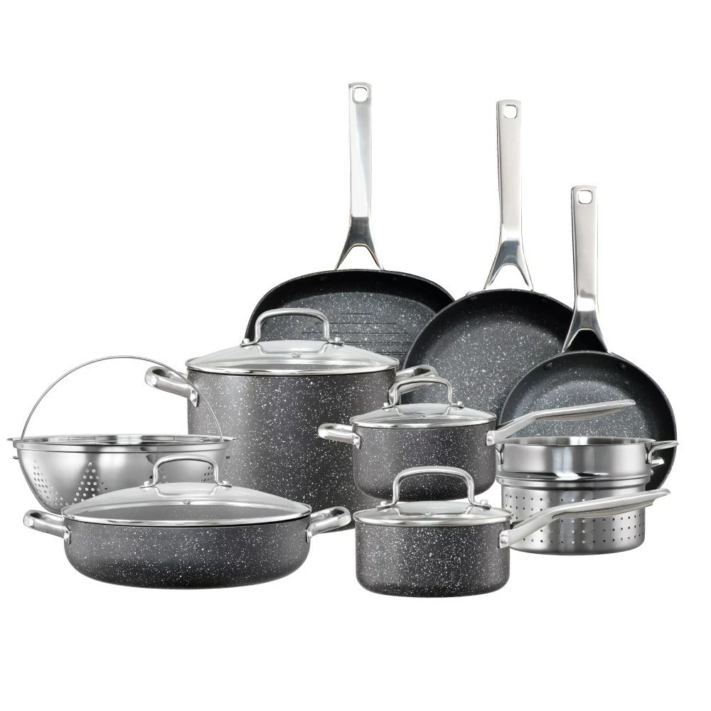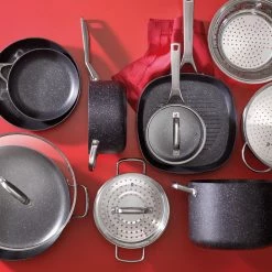 - Comprehensive cookware set consists of 3 x Fry Pan, 2 x Sauce Pan with lid, 1 x Grill Pan, 1 x Stockpot, 1 x Saute Pan with lid, 1x Pasta Steamer, 1 x Steamer and is backed by Baccarat Lifetime Guarantee