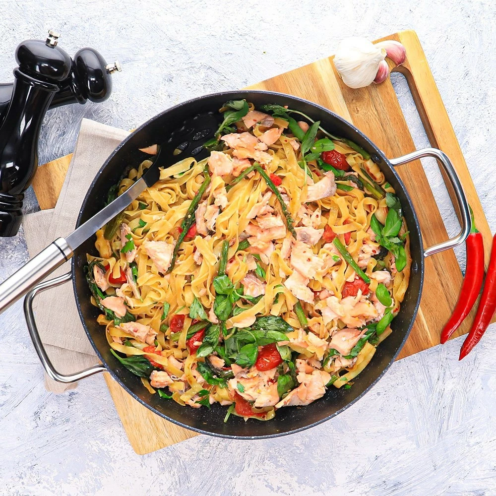 - Aluminium body provides a rapid and even heat distribution, ensuring your food is always cooked thoroughly