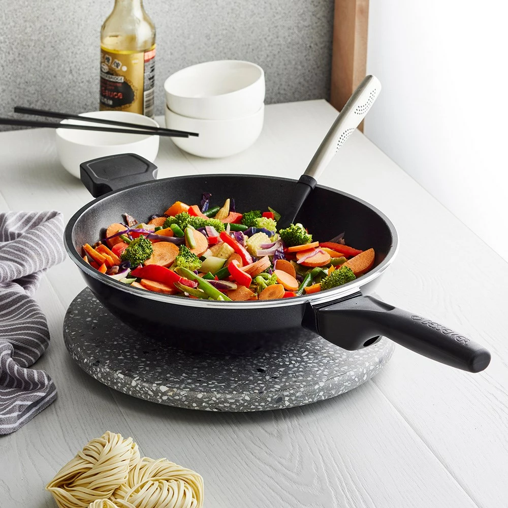 With generations of families using them, there’s no reason not to trust in the Bessemer name ? and now the iconic Australian cookware brand is available at House! The legacy of Bessemer speaks for itself, with many pieces still providing families with unparalleled results for decades. Whether you’re finally replacing mum’s old set or just looking to get one of your own, you can build an all-powerful cookware set with just a few pieces from Bessemer’s core signature range like this 32 x 9cm Stir Fry Pan! Made using the same methods for 50 years, Bessemer cookware is crafted using premium grade, heavy gauge cast aluminium ensuring that Bessemer cookware is lighter and just as durable as your cast iron favourites, plus they can even cook oven staples like cake, pizza and roast on the stovetop thanks to their extra deep body and Bessemer’s patented ?oven effect” cooking capabilites when paired with the Bessemer Non Stick Universal Lid. The interior and exterior of Bessemer cookware features a premium European ceramic fusion triple layer non stick coating that provides smooth and effortless food release, abrasion and scratch resistance, and fast clean up every time you cook. Bessemer cookware is suitable for use on all cooktops (excluding induction) and ensures a rapid and even heat distribution to prevent hot and cold spots, providing you with perfect results. For added comfort and safety, Bessemer cookware is fitted with soft, stay cool handles that are generously sized for a secure grip and remain cool to the touch. Available in classic black and a stylish new red colourway, the new Bessemer cookware is exactly as remembered and ready to take on any recipe. Food definitely tastes better in a Bessemer?.