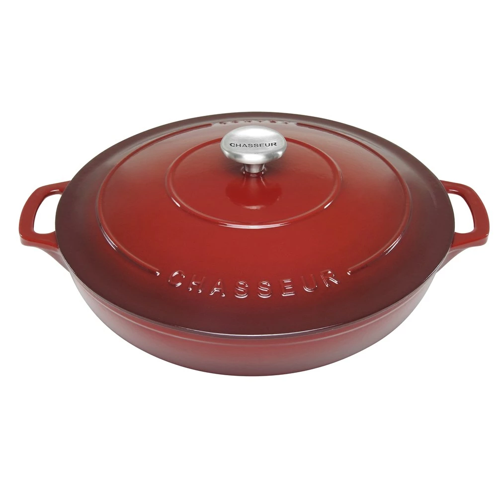 Make delicious stews, braises and curries for the whole family in the Chasseur Round Casserole 30cm – Bordeaux. Made in France using time honoured traditional techniques, the Chasseur Round Casserole 30cm – Bordeaux is suitable for all cooktops including induction and is also oven safe to 220Deg. It absorbs and retains heat to keep food hot and requires only medium heat to perform at its best. It also features unique concentric rings on inside of lids that distribute steam to retain moisture while cooking. The Chasseur Round Casserole 30cm – Bordeaux is made from double-coated enameled cast iron for durable, longer lasting and corrosion free use. The Chasseur Round Casserole 30cm – Bordeaux is perfect to use from oven or cooktop to table and together with its 2.8 Litre capacity, this low casserols is ideal for slow cooking recipes to deliver delicious results.
