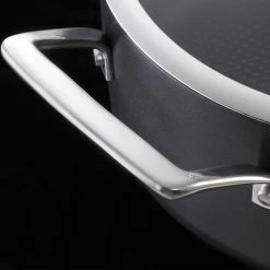 - Designed with cast stainless steel handles, designed to curve up and away from the heat source. These handles are riveted to the cookware for superior strength and durability and feature the latest in stay cool technology