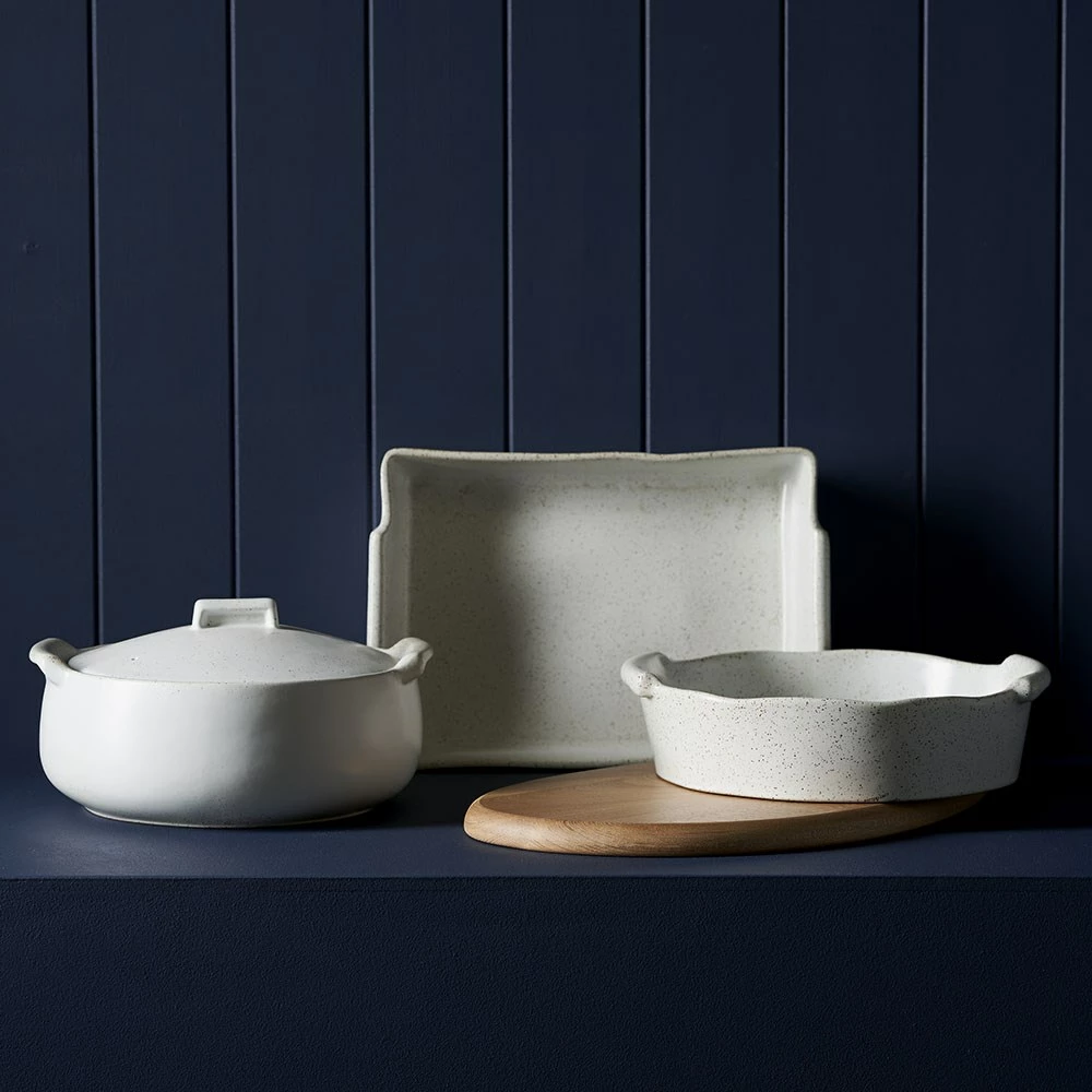Rely on high fired, rugged stoneware with the Robert Gordon Granite Feast Round Casserole 3L White.