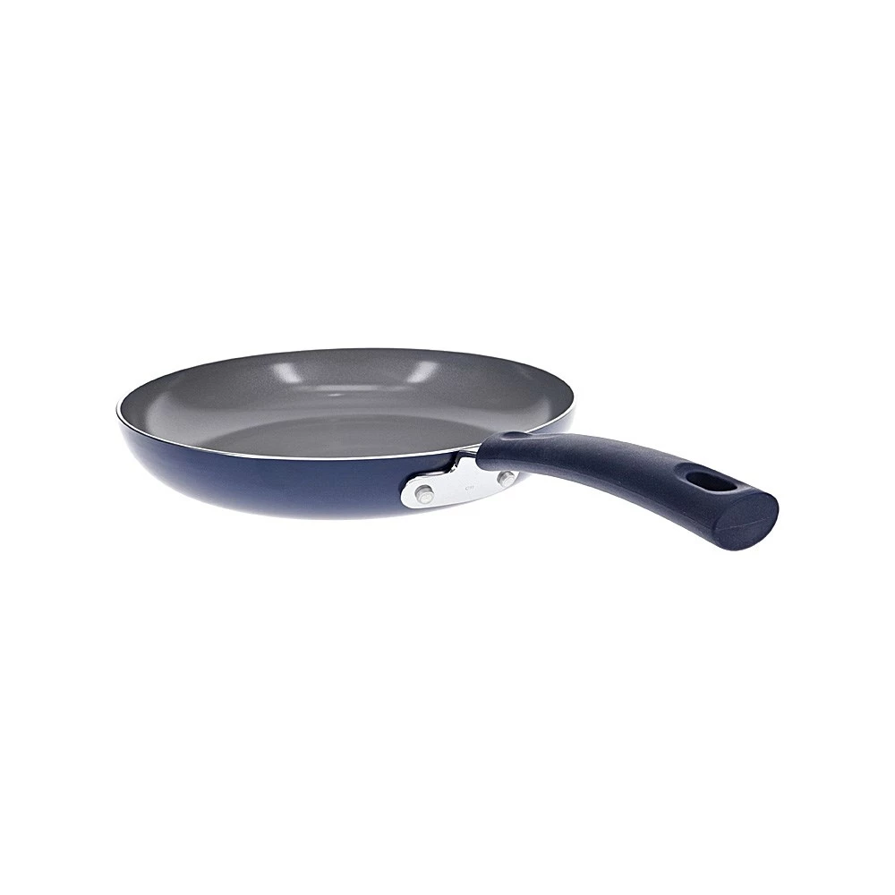 Enjoy the ultimate fry up for breakfast, lunch or dinner using the Scullery Kolori Ceramic Non-Stick Frypan 26cm! With a durable hard-pressed aluminium body, the Kolori Frypan achieves rapid heat transfer and even cooking while eliminating hot spots. Boasting a vibrant navy blue colour scheme, this frypan is a great way to introduce a pop of personality and fun to your culinary space. Innovatively designed with a ceramic non-stick cooking surface, the Scullery Kolori Frypan guarantees exceptional food release and easy cleaning. It comes equipped with an ergonomic soft-touch handle made from high-quality silicone for a comfortable and secure grip while you cook. The Kolori Ceramic Non-Stick Frypan is suitable for gas, electric, ceramic and halogen cooktops and is the perfect piece for cooking fried eggs, meats, pancakes and more. Cook up the ultimate fried feast with the Scullery Kolori Ceramic Non-Stick Frypan!