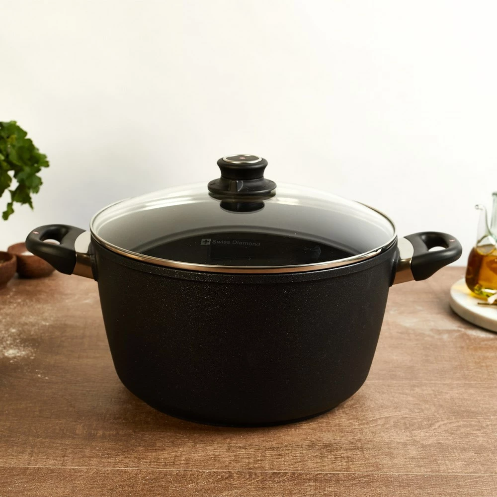 With its thick and heavy, cast aluminium construction and the Swiss Diamond XD Nonstick Casserole with Lid, this versatile pot is in a league all its own.